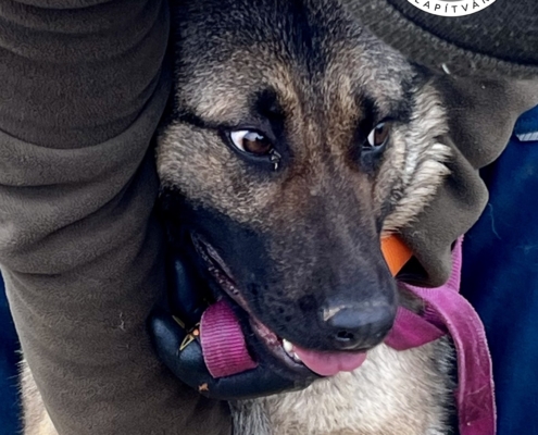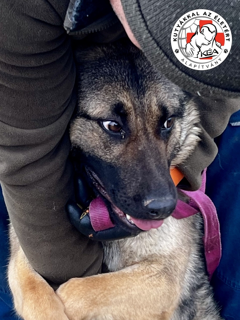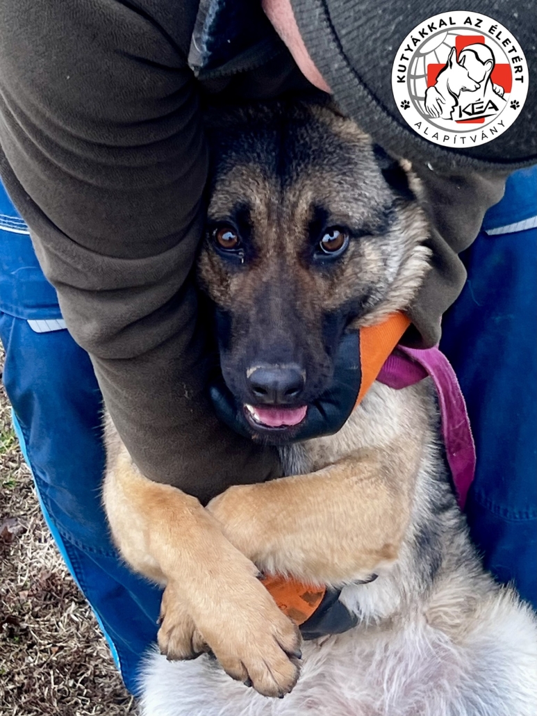 A kutyus jelenleg Jászberényben a Kutyákkal az Életért Alapítvány gondozásában van, az Ő mentésük, mi segítjük az örökbeadását.